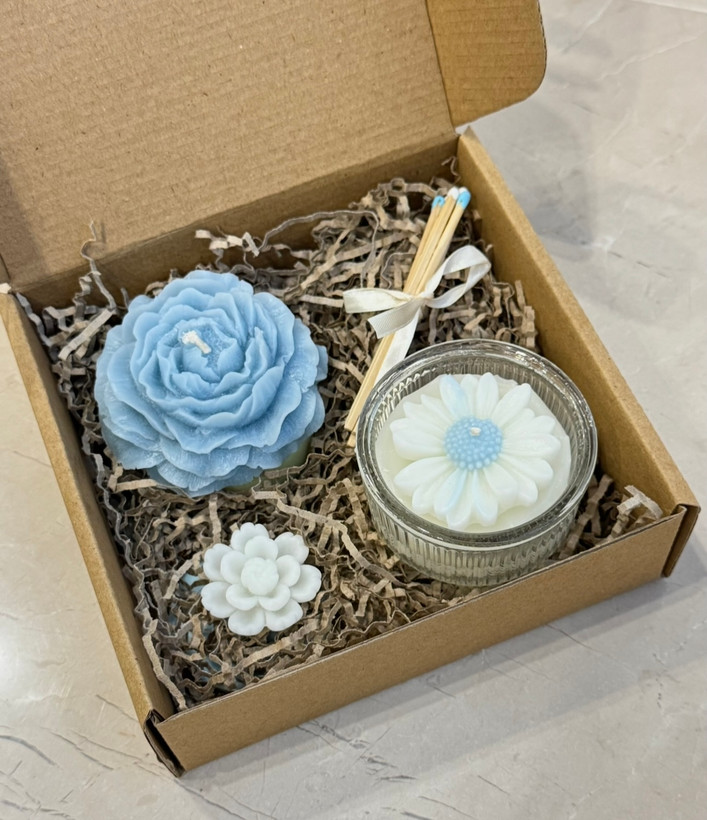 پک هدیه شمع شامل دو عدد شمع گل +کبریت دکوراتیو+شات شمع مارگاریت هست