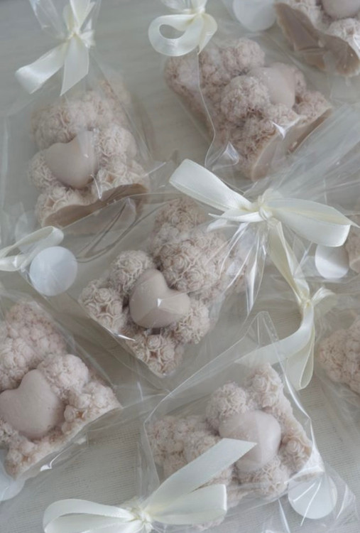 شمع تدی گلی قلبی با بسته بندی کیسه پلاستیکی و روبان