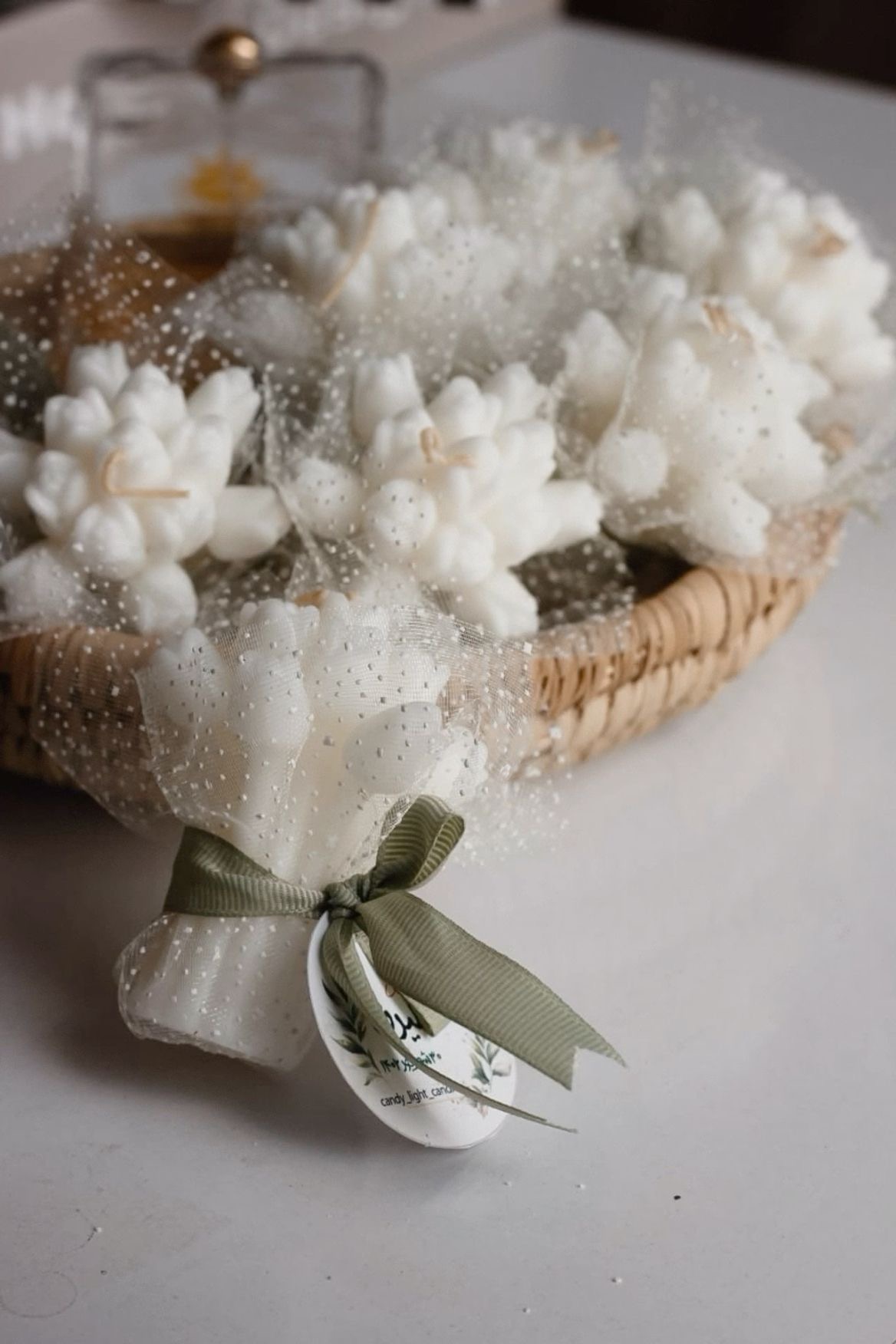 گیفت شمع دسته گل لاله با لیبل و تور